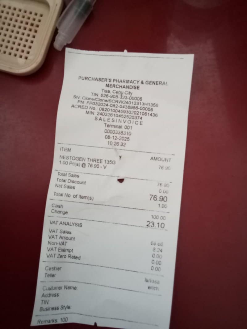 putol ang lower part sa receipt