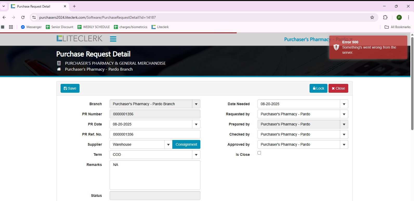 openPURCHASE REQUEST ERROR - PARDO